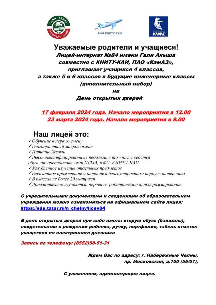 Муниципальное автономное общеобразовательное учреждение города Набережные Челны «Лицей-интернат №84 имени Гали Акыша» Республики Татарстан/Яр Чаллы шәһәренең "Гали Акыш исемендәге 84нче лицей-интернат" муниципаль автоном гомуми белем бирү учреждениесе