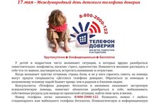 17 Мая- Международный день детского Телефона доверия. Телефон Доверия дает возможность человеку, переживающему какие-либо трудности, получить поддержку, быть понятыми принятыми, разобраться в сложной для него ситуации в более спокойной обстановке и решиться на конкретные шаги. Помощь телефона Доерия всегда анонимна! Телефон Доверия работает круглосуточном режими.