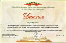 "Детско-юношеская спортивная школа "Заря" стала лауреатом данного конкурса.За существенный вклад в воспитание подрастающего поколения и подготовку спортсменов города Набережные Челны, председателем Совета муниципальных образований Республики Татарстан Минсагитом Шакировым вручены диплом и ключи от легкового автомобиля «Шевроле Нива». -