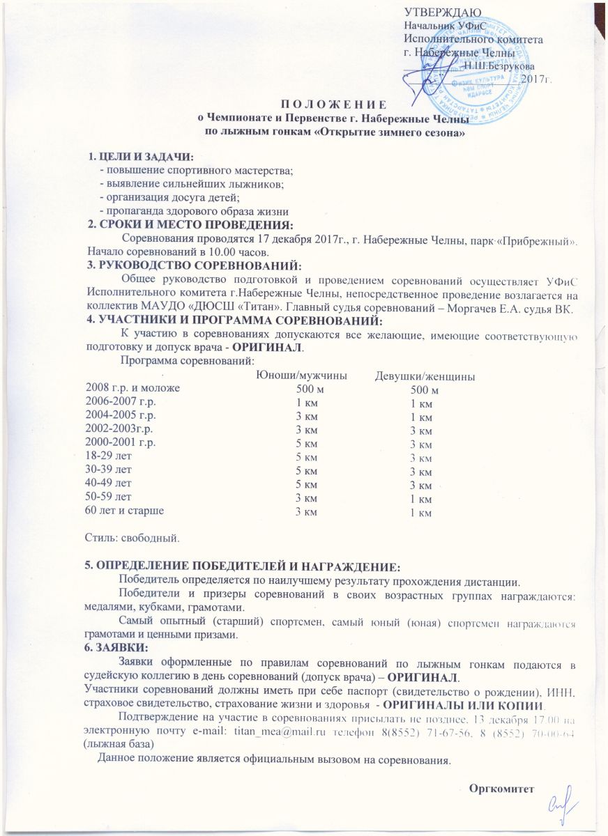 Положение о Чемпионате и Первенстве г.Набережные Челны по лыжным гонкам "Открытие зимнего сезона"