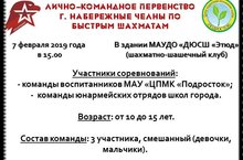 Лично-командное первенство г. Набережные Челны по быстрым шахматам среди подростково-молодежных клубов, юнармейских отрядов школ города Набережные Челны, посвященного памяти Л.Н.Горбунова, ветерана Вооруженных Сил РФ, поэта, шахматиста. 07.02.2019