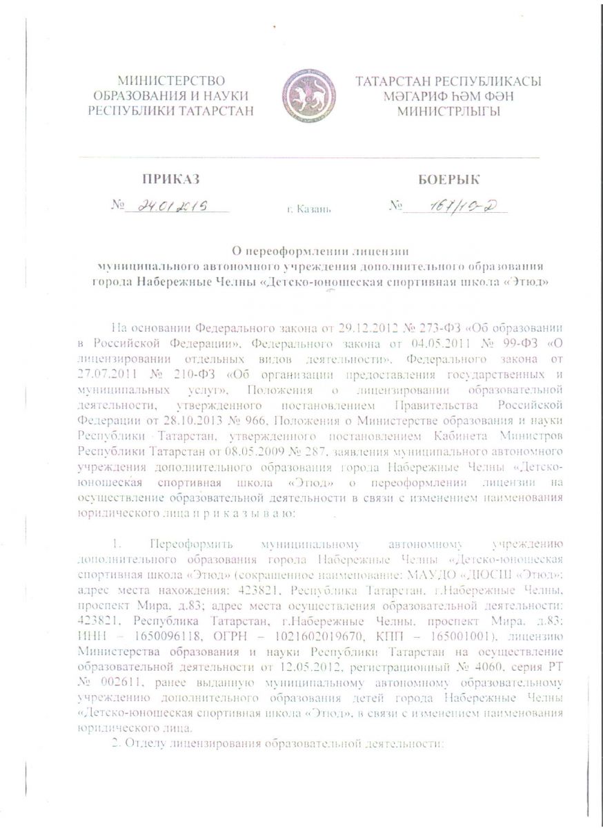Муниципальное автономное учреждение города Набережные Челны "Cпортивная школа "Этюд"
