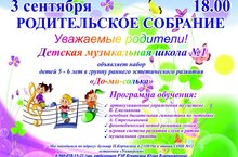 Приглашаем на родительское собрание группы раннего эстетического развития детей 5-6 лет "До-ми-солька"" 01.09.2019