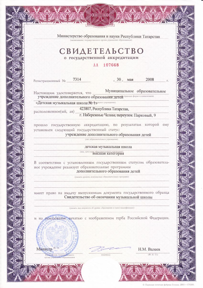Свидетельство о государственной аккредитации №107668 от 30.05.2008 г., высшая категория
