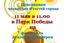 Сегодня, 11 мая в 11:00 часов в парке Победы состоялся традиционный фестиваль духовых оркестров «С ритмом в сердце, с музыкой в душе», посвященный 74 - летию Великой Победы.В фестивале приняли участие духовые оркестры города Набережные Челны. Спасибо всем челнинцам и гостям города за поддержку!!! -