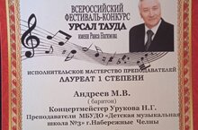 10 декабря в г. Альметьевск состоялся Всероссийский фестиваль-конкурс "УРСАЛ ТАУДА" имени Раиса Нагимова, в котором успешно приняли участие преподаватели ДМШ N°3.