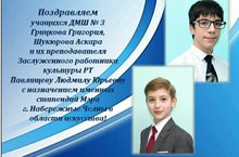 Поздравляем Миронову Е.А. и Файзуллину Г.Ч. с успешным выступлением их учащихся на II Всероссийском конкурсе молодых исполнителей по курсу фортепиано для учащихся разных специальностей ДМШ, ДШИ и студентов ССУЗов. Гололобова Полина - лауреат I степени, Крапивин Артём - дипломант (преп. Файзуллина Г.Ч.); Дювбанова Яна - лауреат III степени (преп. Миронова Е.А.). Молодцы! Желаем дальнейших творческих успехов!