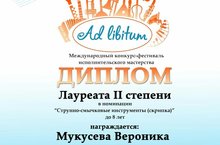 Наши юные звездочки-скрипачки покорили жюри Международного конкурса-фестиваля исполнительского мастерства "Ad libitum". Учащиеся ДМШ №3 Мукусева Вероника и Бикташева Амелия стали лауреатами II и III степени. Поздравляем с дебютом их преподавателя Исламову Елену Валентиновну и концертмейстера Амирову Миляушу Монзиловну! Желаем Вам дальнейших успехов!!!