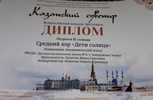 Поздравляем с победой в г.Ижевск наш замечательный хор "Дети солнца" и вокальный ансамбль "Sole mio",а также их руководителя Булатову И.С. и концертмейстера Назмееву К.К. Оба коллектива стали лауреатами II степени на Всероссийском фестивале-конкурсе "Казанский сувенир". Молодцы! Желаем Вам дальнейших побед и творческих успехов!