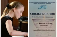 Цапкова Мария - участник мастер-класса преподавателя Центральной музыкальной школы при Московской государственной консерватории им. П.И. Чайковского - Натальи Викторовны Богдановой, организованного Межрегиональным благотворительным общественным фондом "Новые имена" имени И.Н. Вороновой (г. Москва) совместно с Денисом Мацуевым.
