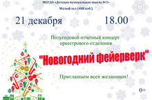21 декабря в 18.00 состоится полугодовой отчетный концерт оркестрового отделения "Новогодний фейерверк".