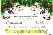 27 декабря в 17.00 состоится новогоднее представление учащихся группы РЭР "Мы встречаем Новый год !" Приглашаем всех желающих !