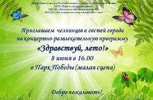 Уважаемые челнинцы и гости города Набережные Челны! Приглашаем вас на концертно-развлекательную программу "Здравствуй, лето!" 8 июня в 16.00 в Парк Победы (малая сцена).