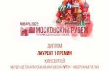 Поздравляем с победой Хан Сергея и его преподавателя Заслуженного работника культуры РТ Павлищеву Людмилу Юрьевну (концертмейстер Урукова Наталья Геннадьевна) на III Международном конкурсе "Московский рубеж", который состоялся при участии фонда поддержки молодых талантливых "Волшебство звука" в г.Москва.