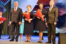 На сцену "Энергетика" под овации зала пригласили представители трудовых династий, которые много лет проработали в Набережных Челнах в различных отраслях. Из отрасли культуры: семья Малюта.