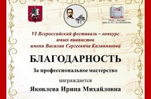 - Шатилова Елена - дипломант 1 степени в VI Всероссийском фестивале-конкурсе юных пианистов им.В.С.Калинникова;