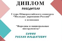 В Казани прошел I тур Общероссийского конкурса «Молодые дарования России - 2022», учредителем которого является Министерство культуры Российской Федерации. В результате серьезного конкурсного отбора одним из победителей I тура Общероссийского конкурса «Молодые дарования России - 2022» из Набережных Челнов стал Сафин Руслан, учащийся МБУДО "Детская музыкальная школа №3".