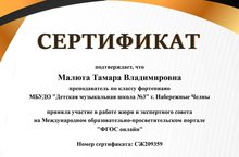 Поздравляем Малюта Тамару Владимировну с отличными результатами. Тамара Владимировна заняла 1 место в Международном конкурсе профессионального мастерства "Педагог дополнительного образования", приняла участие в работе жюри и экспертного совета, а также поделилась накопленным багажом знаний, опубликовав свою статью на официальном сайте издания fgosonline.ru.