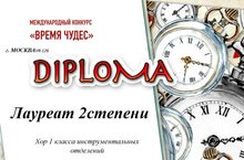 Поздравляем наших самых юных воспитанников - хор 1 классов инструментальных отделений с успешным участием в Международном конкурсе "Время чудес" в г.Москва.