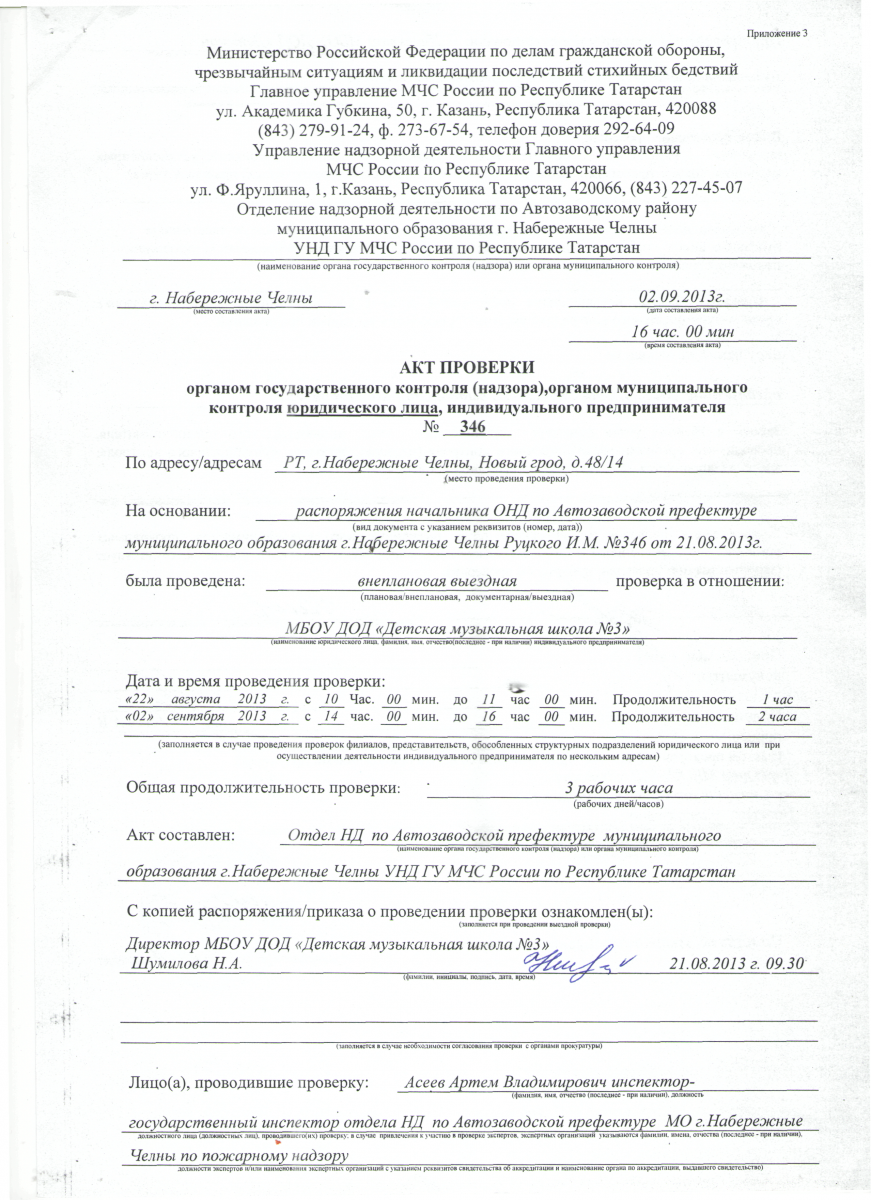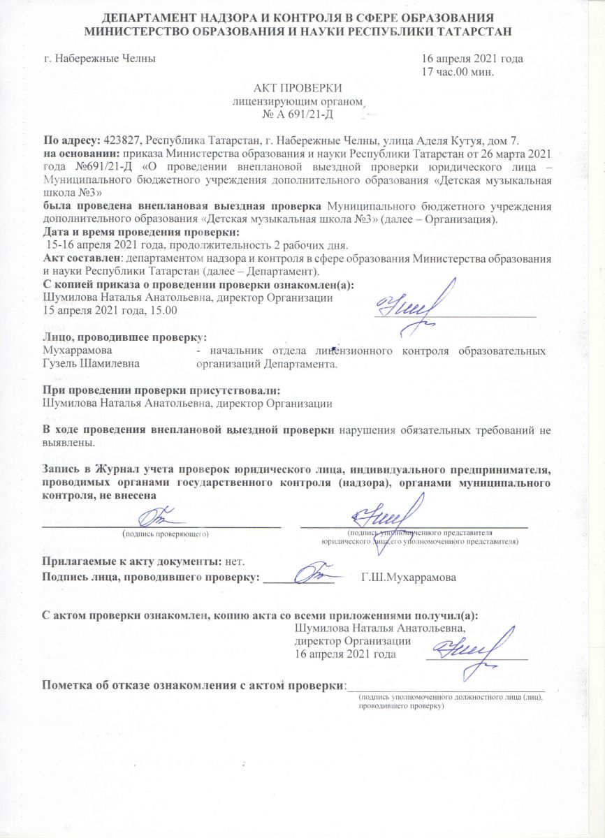 Акт проверки лицензирующего органа Департамента надзора и контроля в сфере образования МОиН РТ