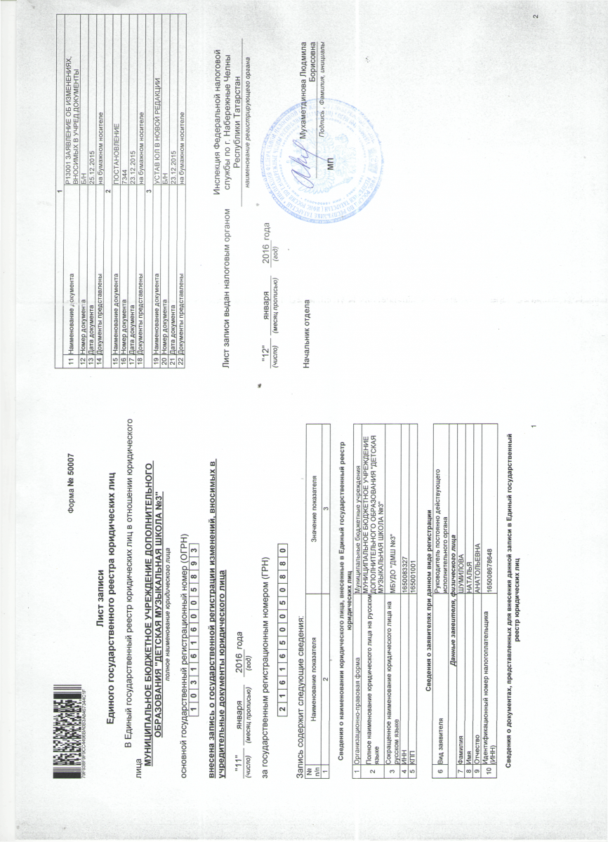 Лист записи Единого государственного реестра юридических лиц 12.06.2016г.