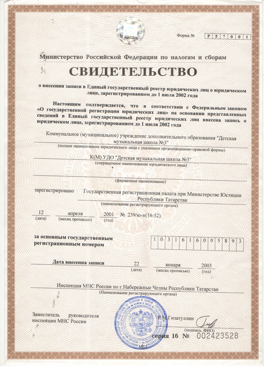 Свидетельство о внесении записи в Единый государственный реестр юридических лиц