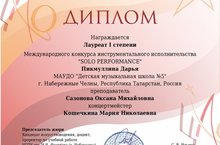 Международный конкурс инструментального исполнительства "SOLO PERFORMANCE" 15.05.2021