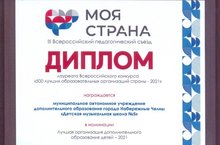Детская музыкальная школа №5 стала лауреатом Всероссийского конкурса «500 лучших образовательных организаций страны - 2021» в номинации "Лучшая организация дополнительного образования детей". Итоги конкурса подвели на III Всероссийском педагогическом съезде «Моя страна», который прошел в Санкт-Петербурге с 15 по 18 апреля 2021 года. Конкурс, в котором участвуют лучшие российские образовательные организации, продемонстрировавшие передовой педагогический опыт и высокие показатели качества образования, организуется и проводится ежегодно Общественно-профессиональным объединением "Невская Образовательная Ассамблея" совместно с Центром непрерывного образования и инноваций в Санкт-Петербурге.