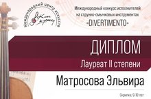 Поздравляем с победами лауреатов Международного конкурса исполнителей на струнно-смычковых инструментах "DIVERTIMENTO" 02.05.2021