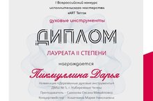 - Пикмуллина Дарья - Лауреат II степени (кл.преп.Сазоновой О.М., конц.Кошечкина М.Н.);