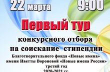 22 марта с 9:00 в Детской музыкальной школе №5 пройдет Первый (региональный) тур конкурсного отбора на соискание стипендии Благотворительного фонда «Новые имена» имени Иветты Вороновой