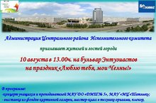 Администрация центрального района Исполнительного комитета приглашает жителей и гостей города 10 августа в 13.00 на бульвар Энтузиастов.