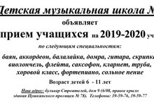 Детская музыкальная школа №5 объявляет о ДОПОЛНИТЕЛЬНОМ ПРИЁМЕ учащихся на 2019-2020 учебный год. Консультация и экзамен состоятся 23 АВГУСТА в 10:00.
