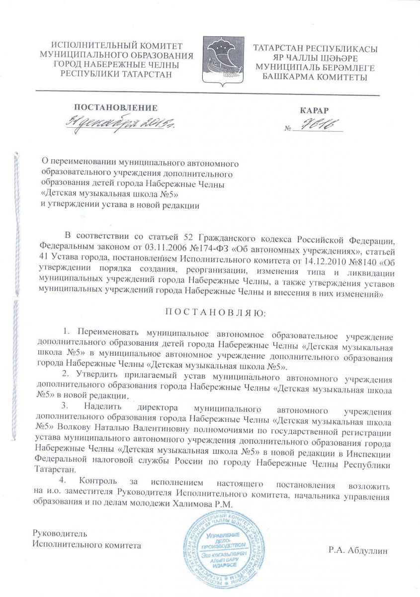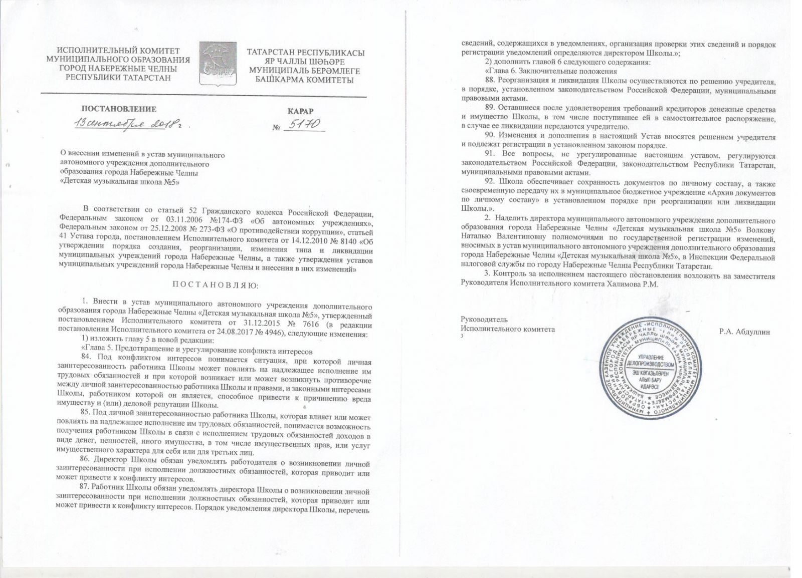 Постановление о внесении изменений в устав от 13.09.2018 г. № 5170
