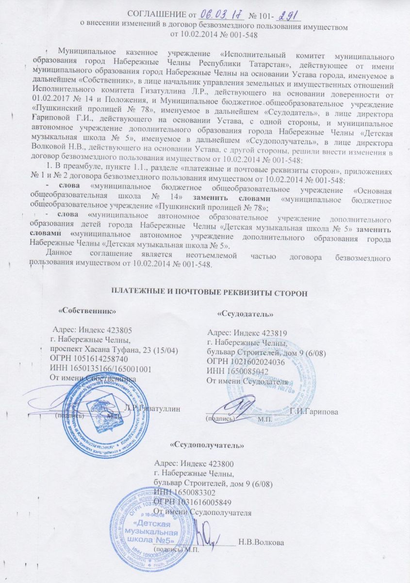 Договор безвозмездного пользования имуществом 001-548 от 10.02.2014