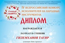 Поздравляем учащихся класса преподавателя Лобановой Е.В. Гилемханова Тагира, Мухаметгараева Тагира, Харисова Ильназа с отличными результатами в IV Всероссийском конкурсе исполнителей на народных инструментах "Русская палитра"!