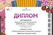 Поздравляем оркестр духовых инструментов ДМШ №6 (руководитель Денислямов Р.А.) с победой в Международном музыкальном конкурсе "Виртуозы зажигают звезды"!
