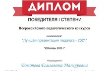 Поздравляем преподавателя теоретических дисциплин Богатову Елизавету Мансуровну с победой во Всероссийском педагогическом конкурсе!