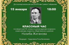Сегодня для учащихся ДМШ №6 состоялся классный час в честь 110-летия со дня рождения выдающегося татарского композитора и общественного деятеля - Назиба Гаязовича Жиганова.