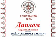 Международный конкурс-фестиваль" В вихре велесова круга", г. Москва, 19.12.2020 г. Файзрахманова Эльмира - лауреат 3 степени!