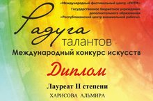 Международный конкурс искусств "Радуга талантов", г.Казань, 20.12.2020 г. Харисова Альмира - ЛАУРЕАТ II степени. Преподаватель - Гайсина Эльвина Альбертовна