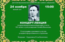 Сегодня в малом зале ДМШ №6 состоялся Концерт татарской фортепианной музыки, посвященный 110-летию со дня рождения Назиба Жиганова.