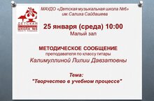 21 января в концерт-холле ДМШ №6 им.С.Сайдашева состоялся концерт преподавателей "Мы дарим музыке любовь".
