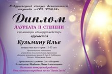Поздравляем Кузьмина Илью, класс преподавателя Архиповой Ольги Петровны!