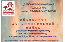 Вакансии в ДМШ N6 им. С. Сайдашева.