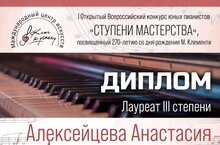 Алексейцева Анастасия - лауреат I-го Открытого Всероссийского конкурса юных пианистов "Ступени мастерства", посвященный 270-летию со дня рождения М.Клементи!