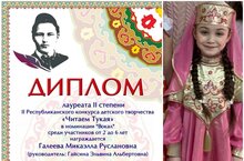 Галеева Микаэлла - лауреат II Республиканского конкурса детского творчества "Читаем Тукая"!