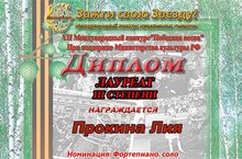 Прокина Лия - лауреат VII Международного конкурса музыкальных талантов "ПОБЕДНАЯ ВЕСНА" при поддержке Министерства Культуры Российской Федерации!