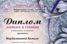 Мардамшина Камиля - лауреат Международного конкурса исполнителей общего фортепиано "Белый Рояль"!