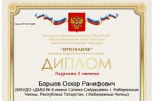 Барыев Оскар - лауреат Международного фестиваля-конкурса "Призвание"!